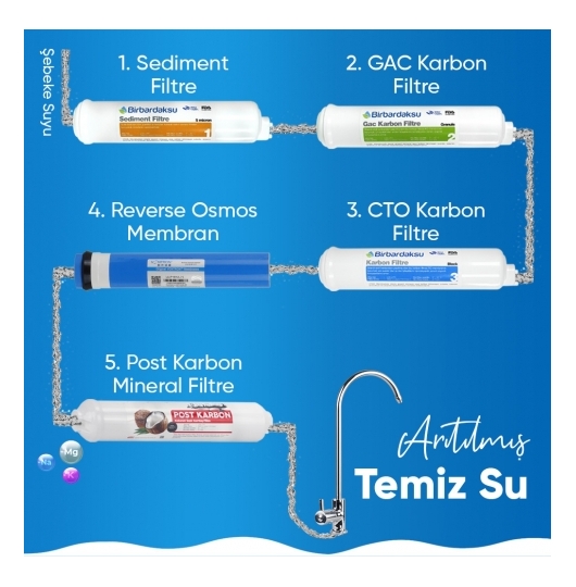 Sağlıklı su deneyiminin devamlılığı için filtrelerin her biri, kendi değişim sürelerine uygun olarak yenilenmelidir. Membran ve post karbon filtre için değişim süresi 1 yıl iken, Sediment filtre, Aktif karbon filtre ve Blok karbon filtre için değişim süresi 6 aydır.